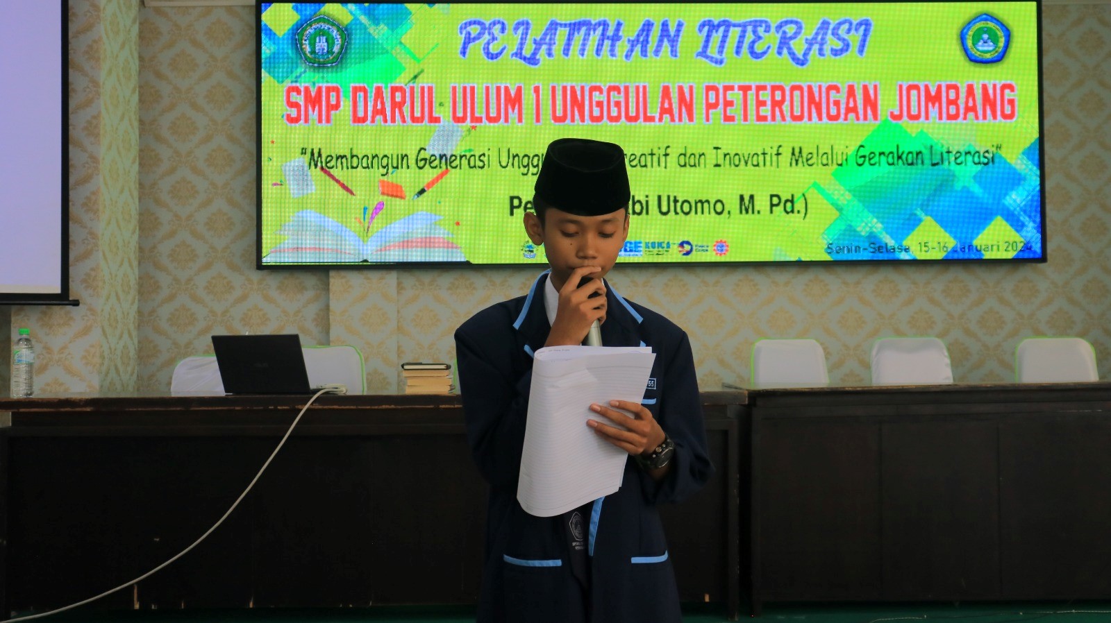 Pada hari Senin – Selasa, 15 s.d 16 Januari 2024, SMP Darul Ulum 1 Unggulan Peterongan mengadakan Pelatihan Literasi yang diikuti oleh siswa./siswi kelas VII, VIII, dan IX. Total keseluruhan ada 160 peserta yang terdiri atas 80 siswa putra dan 80 siswa putri. Pelaksanaan pelatihan ini terpisah antara putra dan putri. Untuk siswa putra pelatihan literasi dilaksanakan pada hari Senin, 15 Januari 2023 sedangkan untuk siswa putri dilaksanakan pada hari, Selasa, 16 Januari 2024